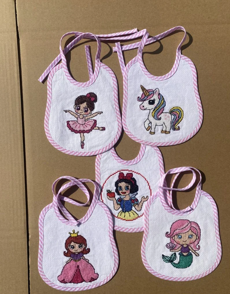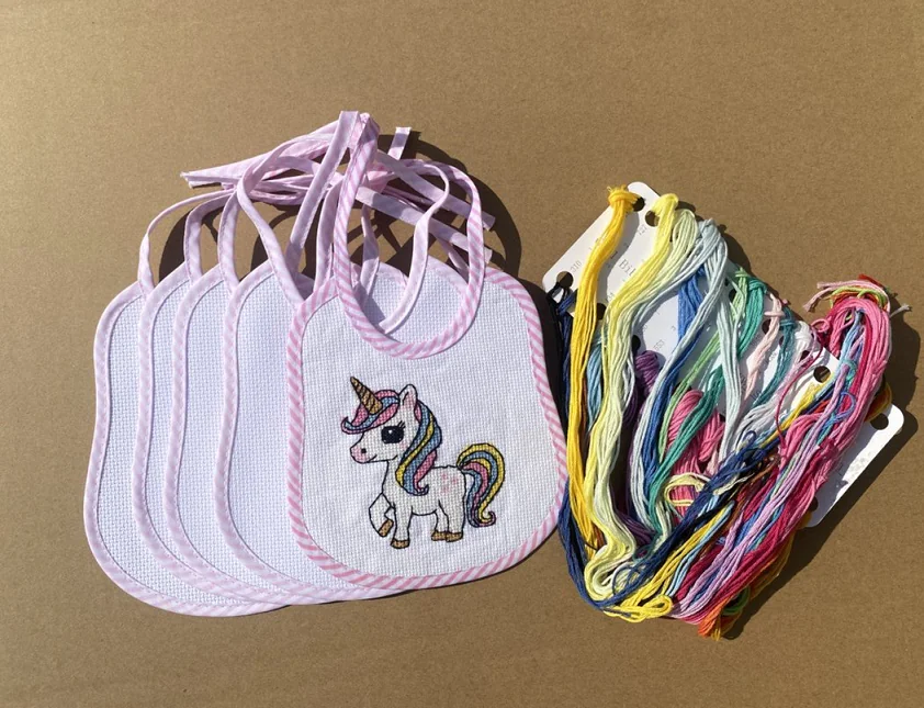 Max Stitch Cross Stitch Kit, 6pcs pink bib cross stitch kit, blank bib to do cross stitch