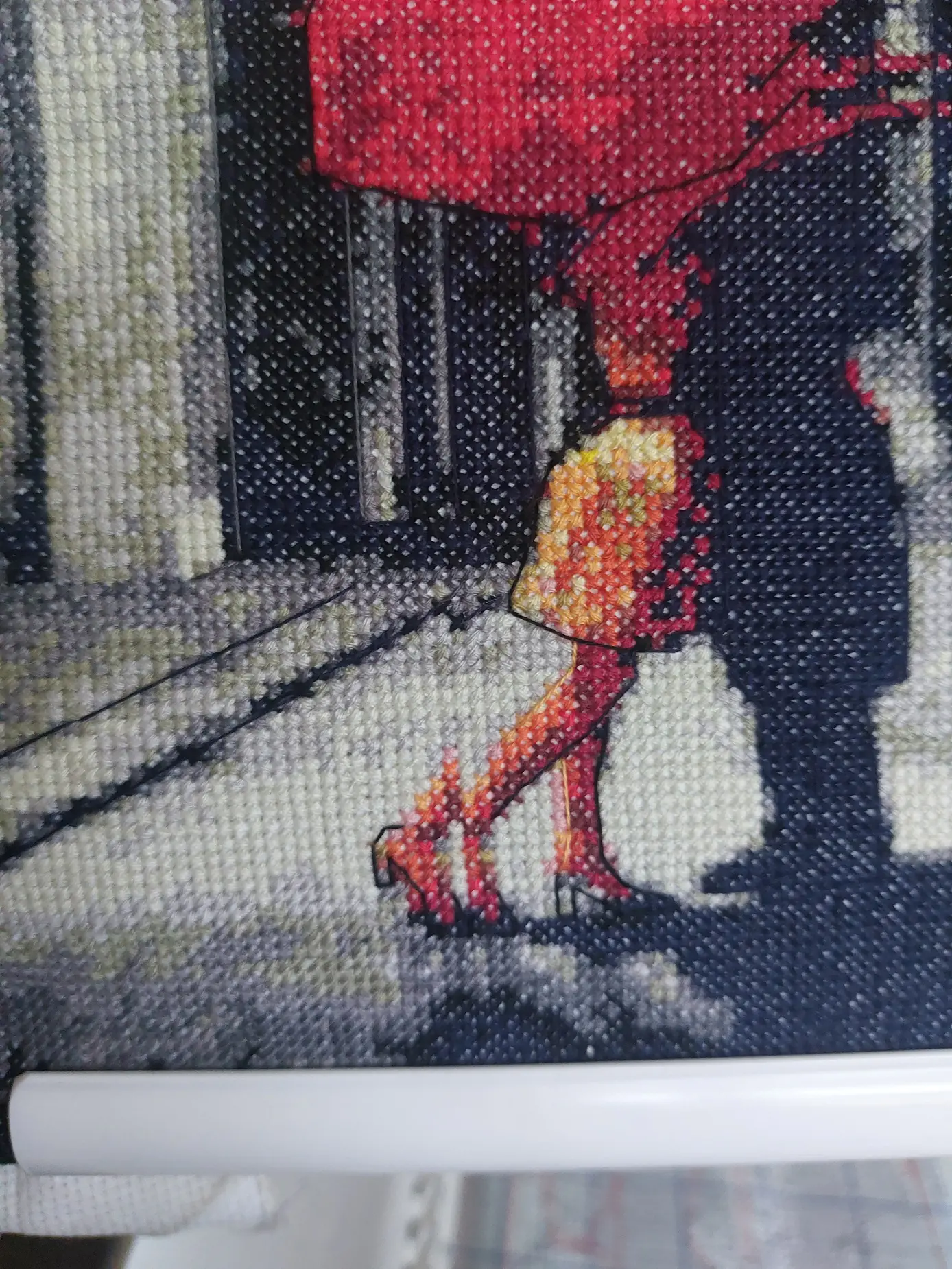 kiss in paris in cross stitch kits, red in black and white cross stitch